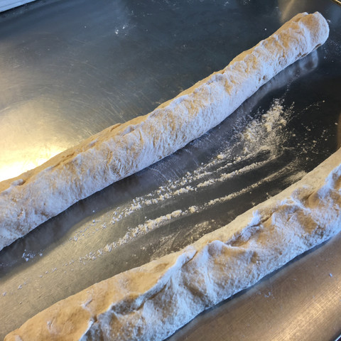 Bei 220° mit Schwaden für 20 Minuten backen (nach etwa 10 Minuten das Wasser des Schwadens wieder entfernen).